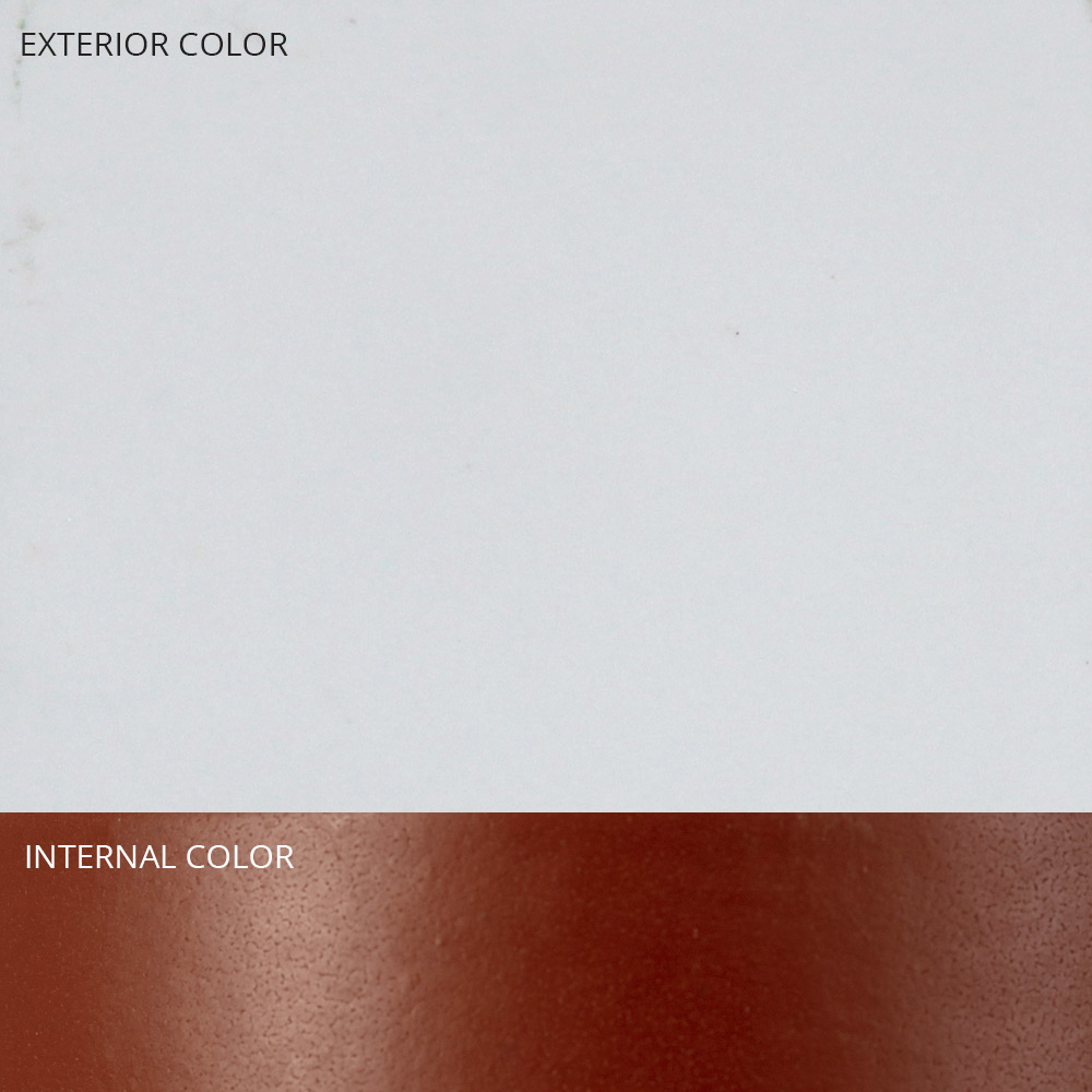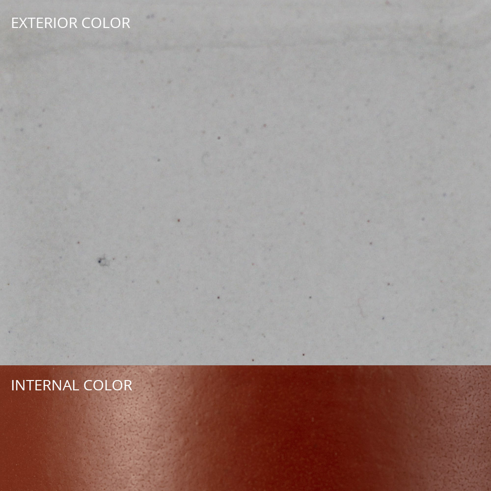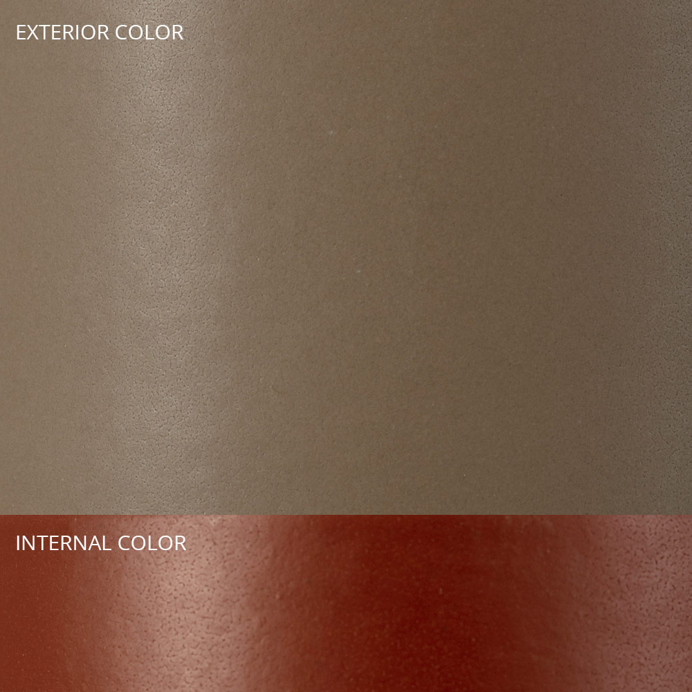 - ceglane matowe wnętrze i gołębi szary na zewnątrz;