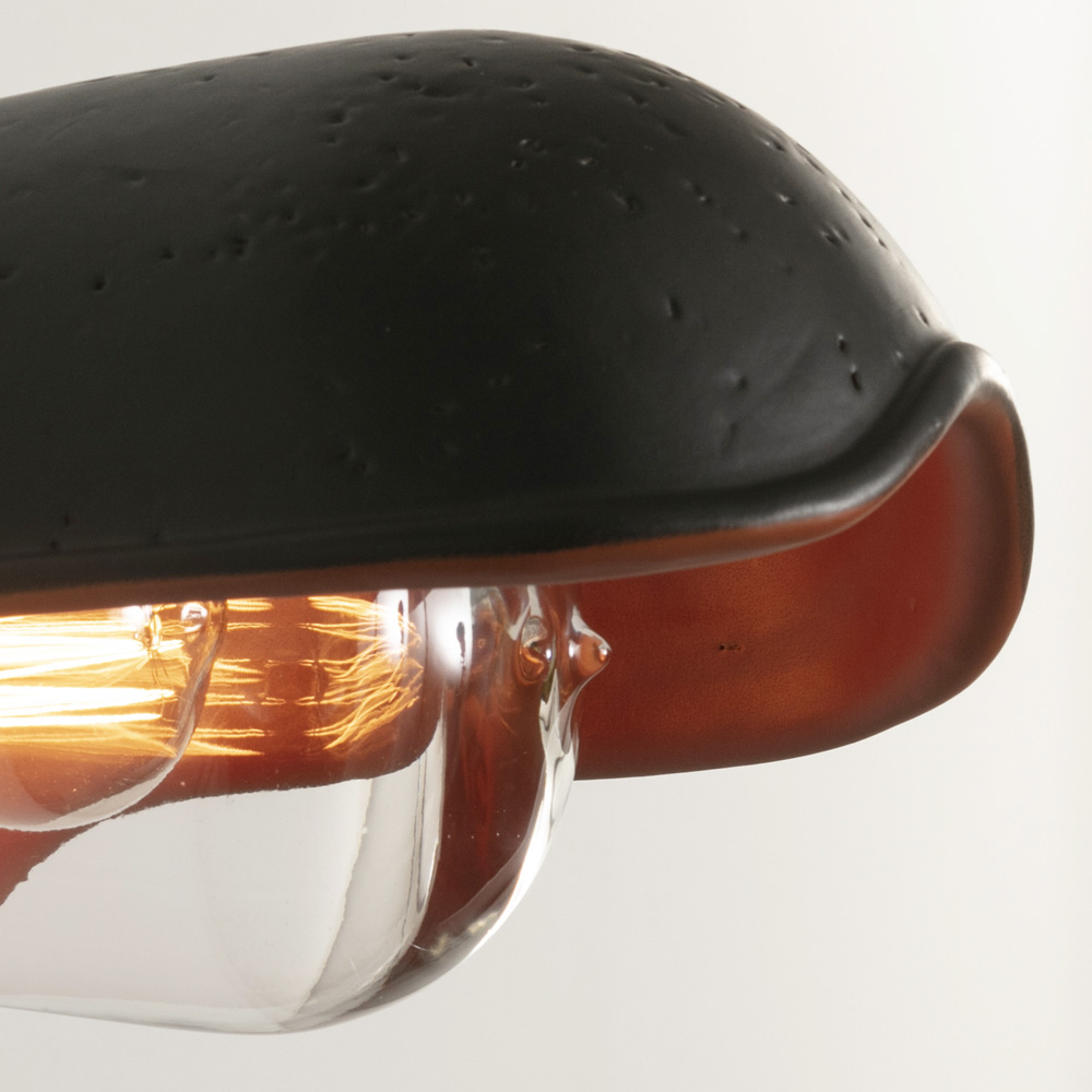 Ręcznie wykonana zewnętrzna lampa ścienna z toskańskiej majoliki i dmuchanego szkła Made in Italy.
