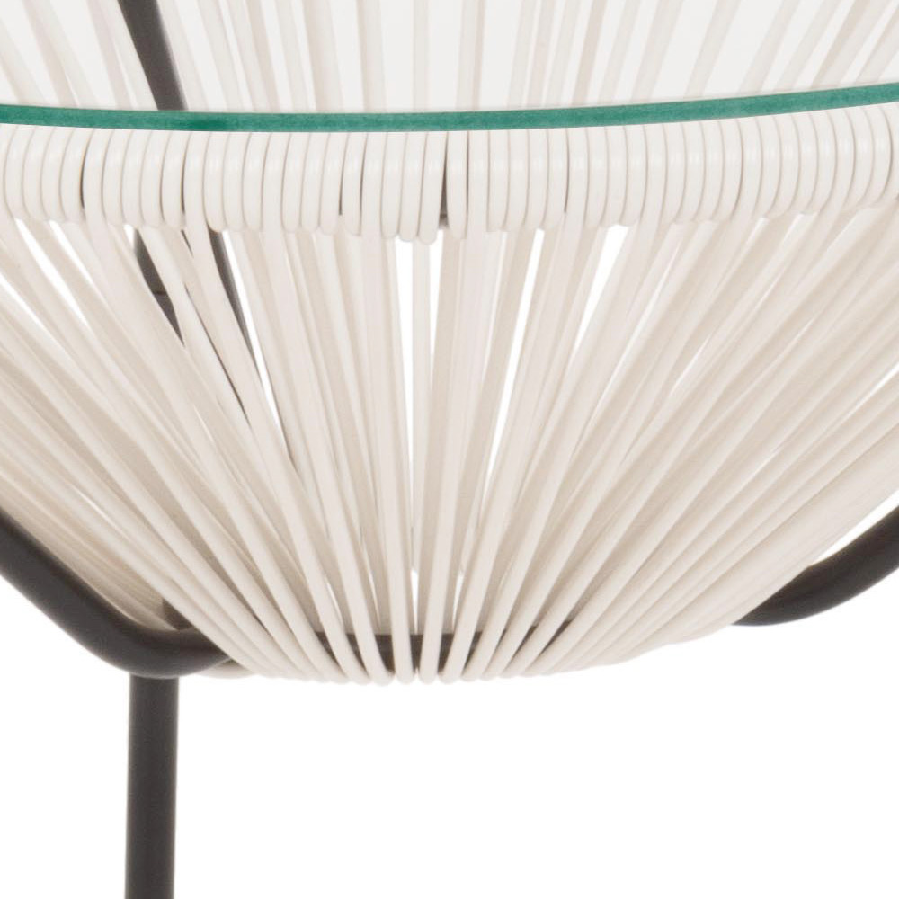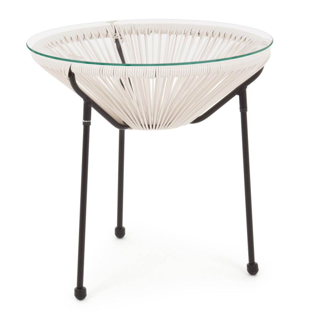 Stolik kawowy zewnętrzny ze stali, ze szklanym blatem, element ogrodowy.