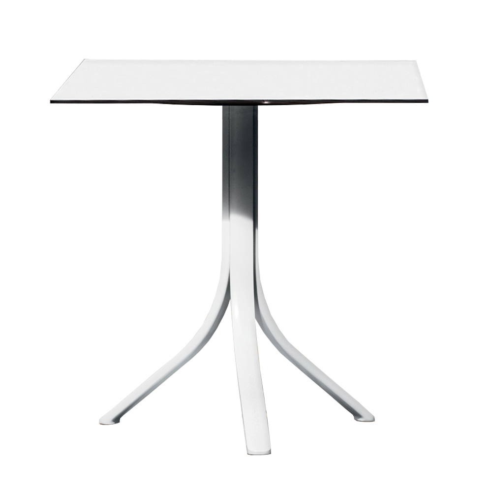 aluminium malowanego proszkowo epoksydem , w połączeniu z kwadratowym blatem o grubości 10 mm z