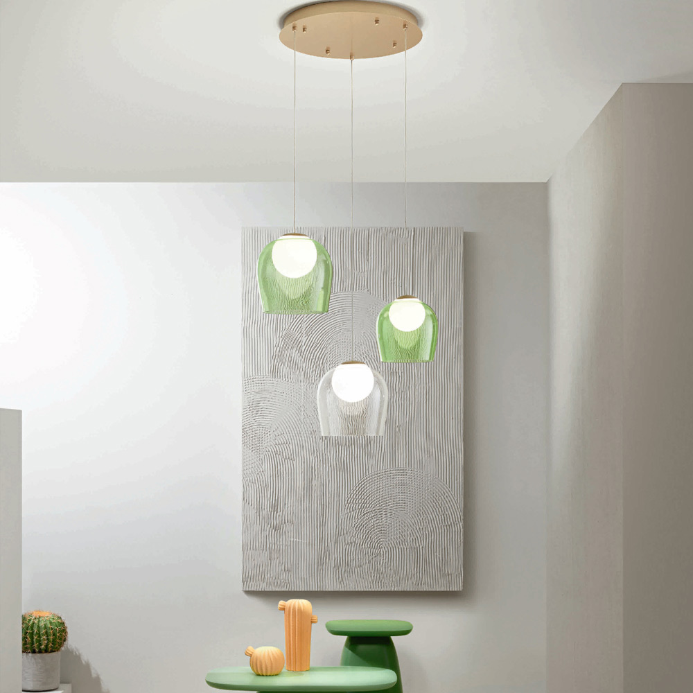 opcjonalnym kloszem z kolorowego szkła , który można zdjąć, odkręcając szklaną kulę.