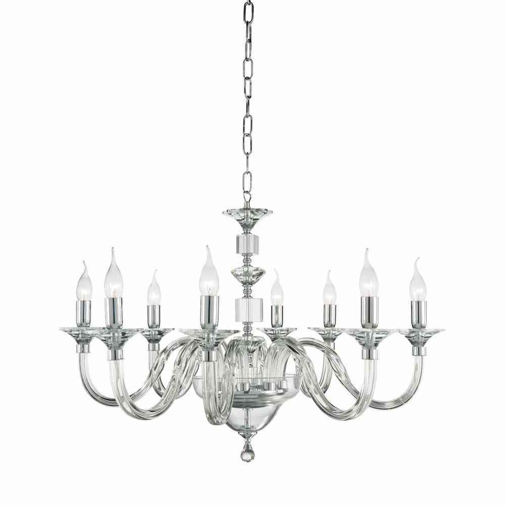 Żyrandol 8 ramienny szklany z kryształowymi dekoracjami, Ivy
