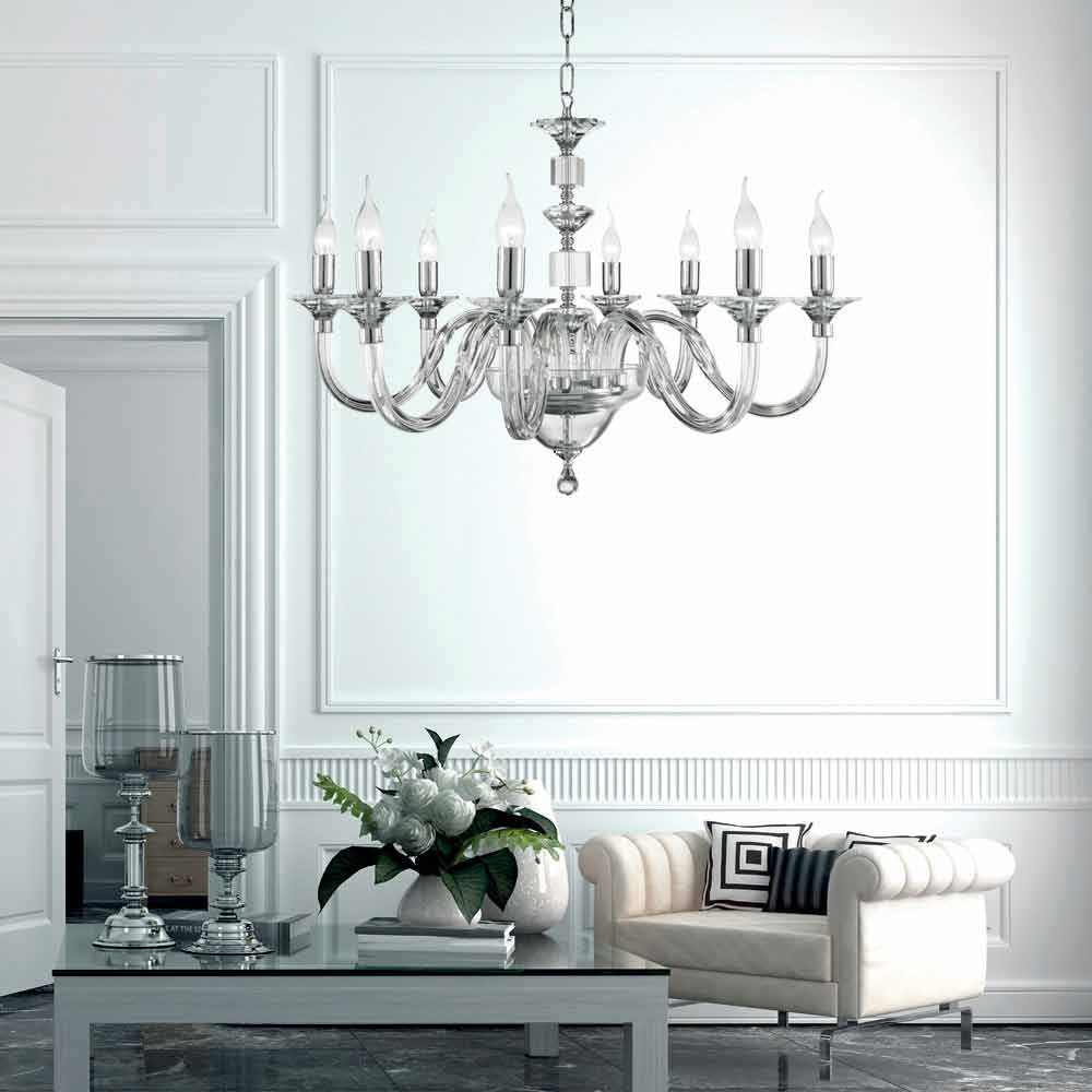 Klasyczny żyrandol 12 lamp z włoskiego ręcznie robionego szkła i metalu - Memo