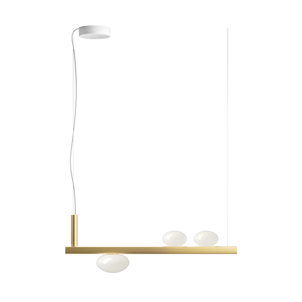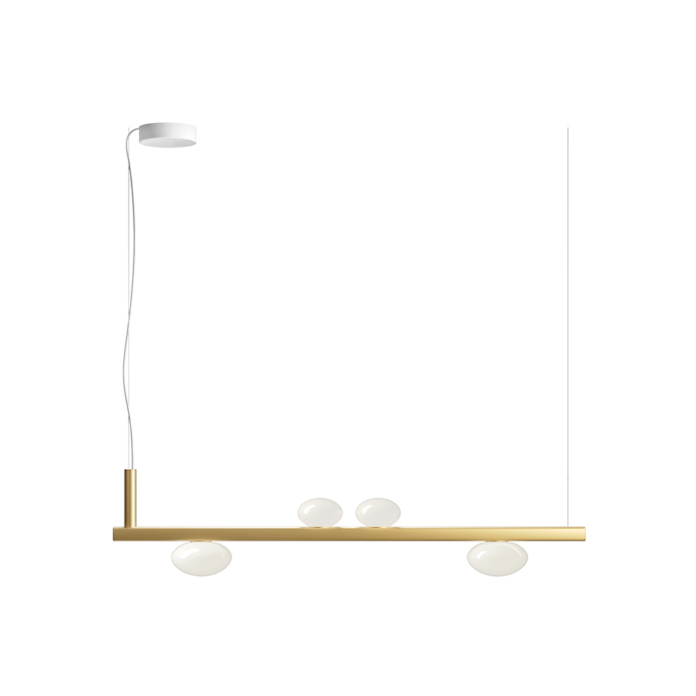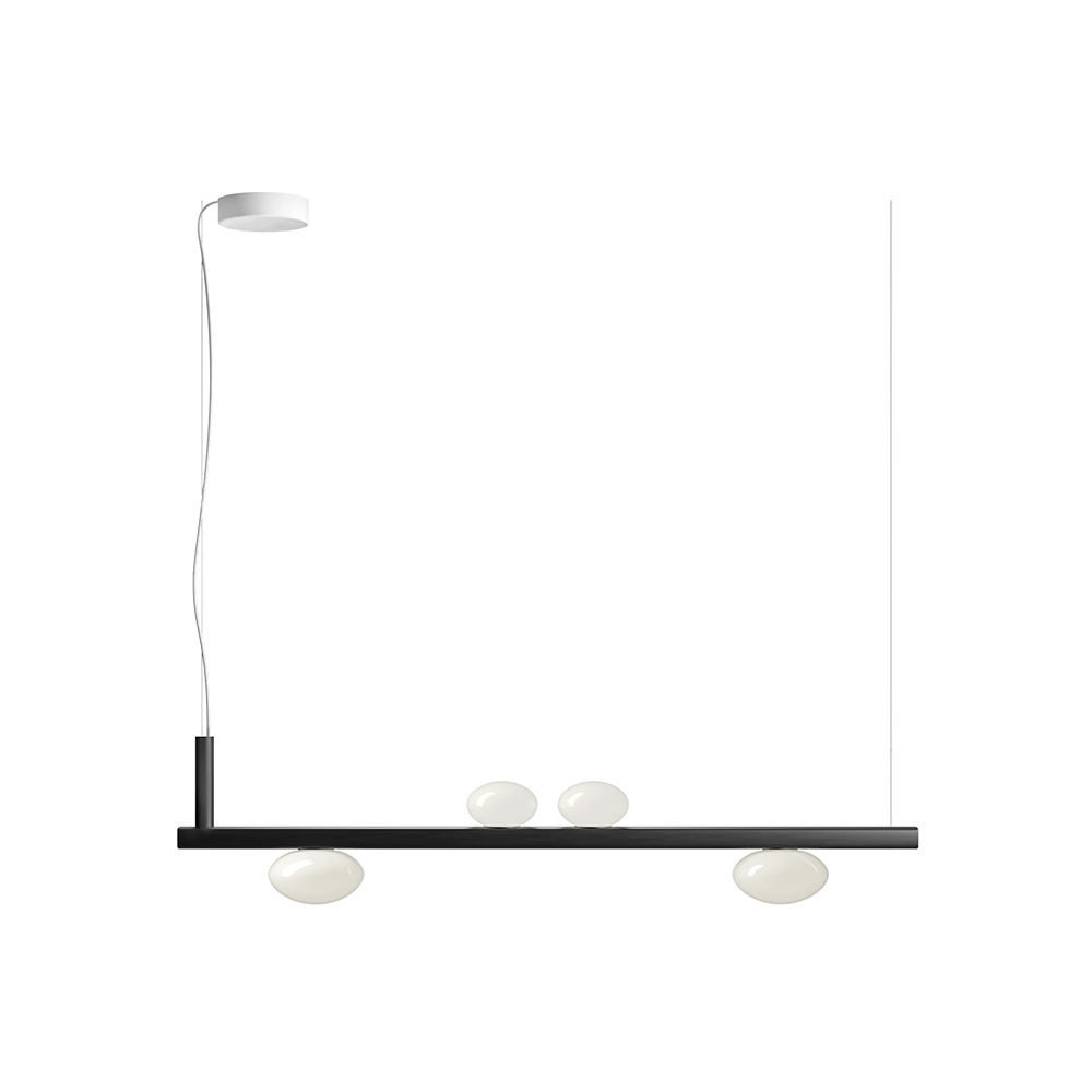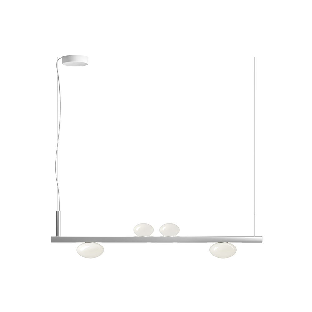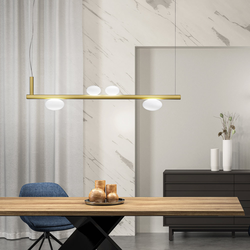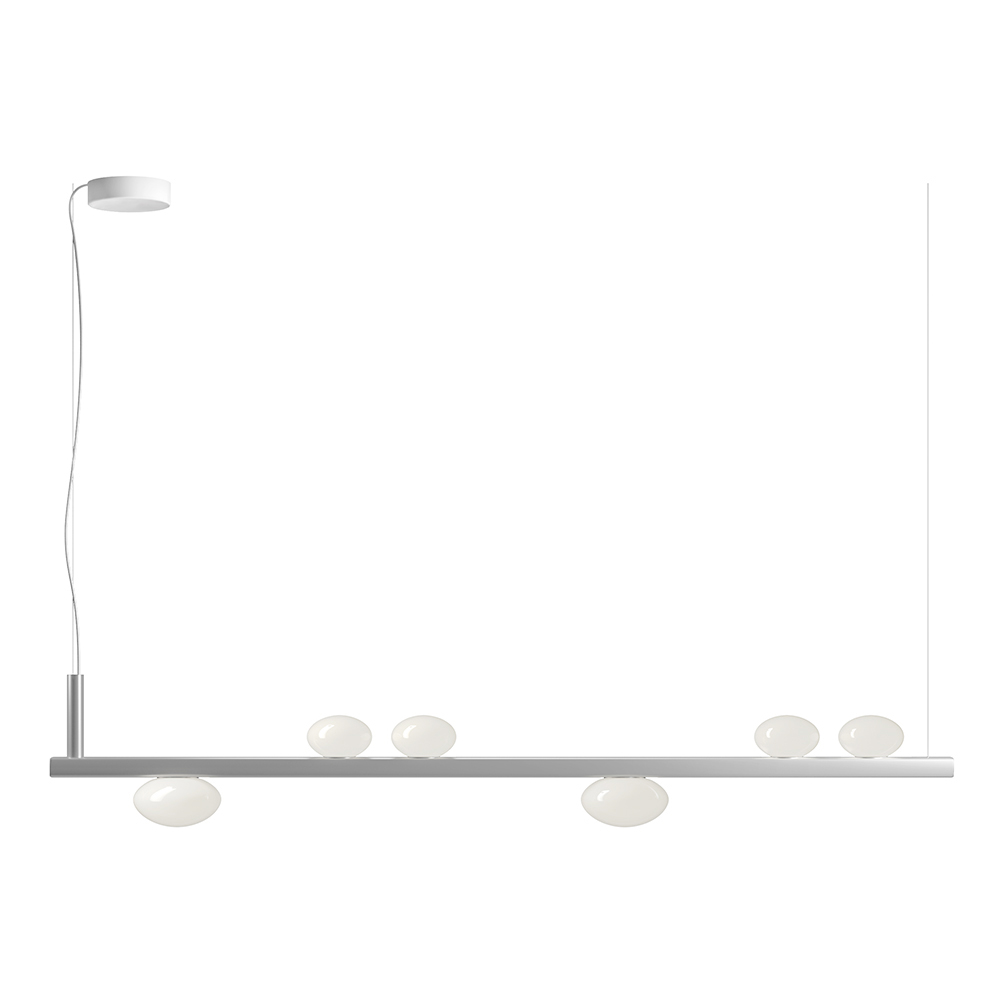 Ta lampa wisząca to prawdziwa ikona inteligentnego designu i dyskretnej technologii . Jej czysta, linearna forma w połączeniu z eleganckimi, kulistymi kloszami z opalowego szkła sprawia wrażenie, jakby zawieszonych w równowadze, tworzy nowoczesny i lekki efekt wizualny.