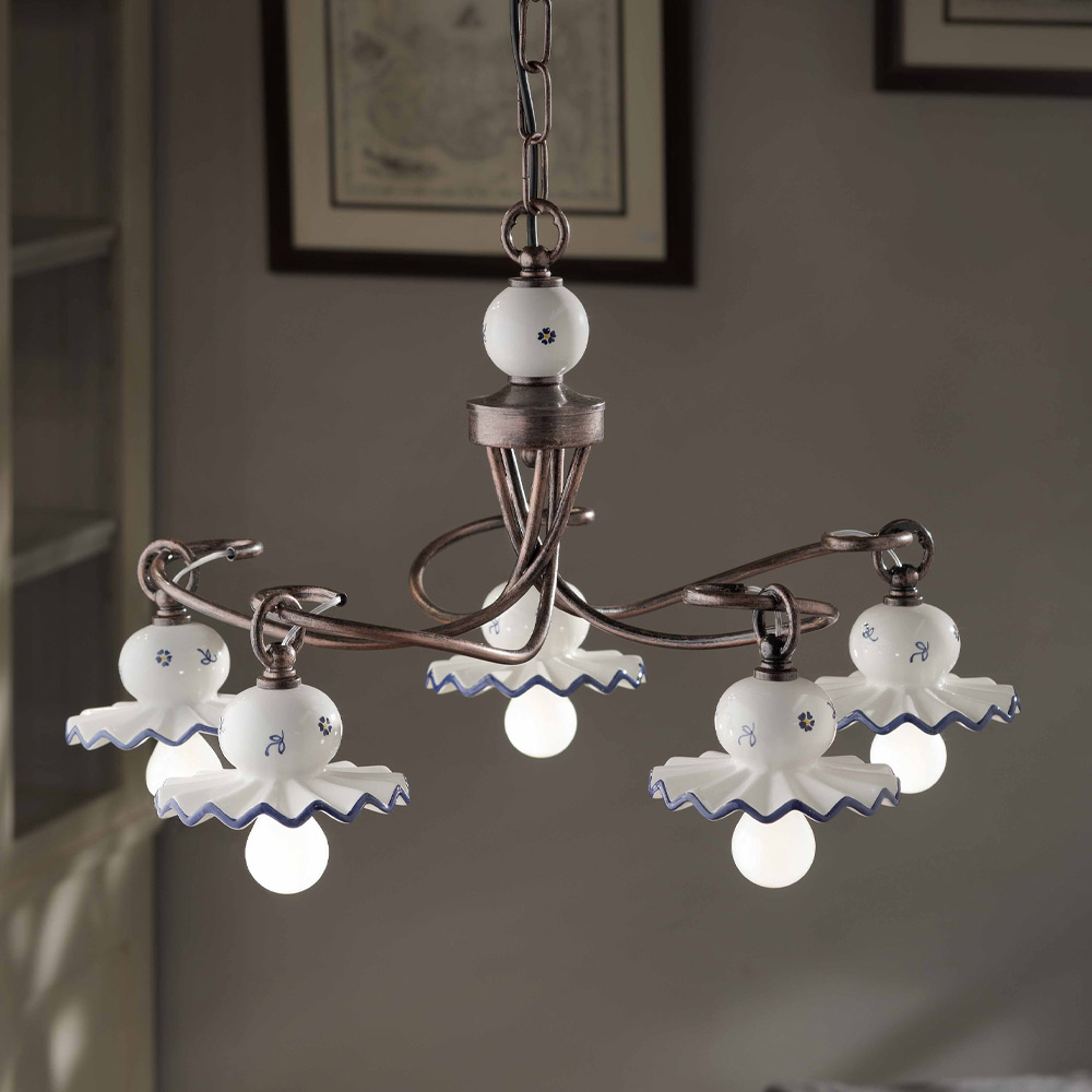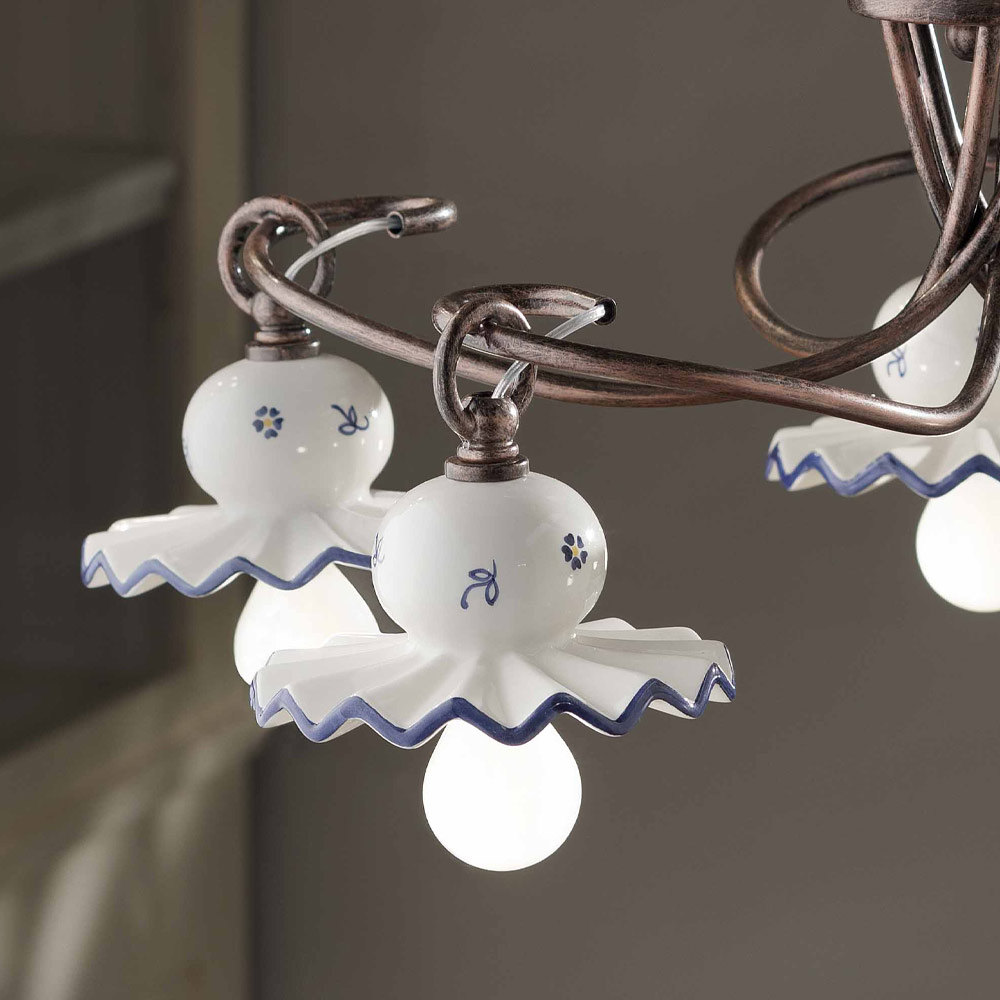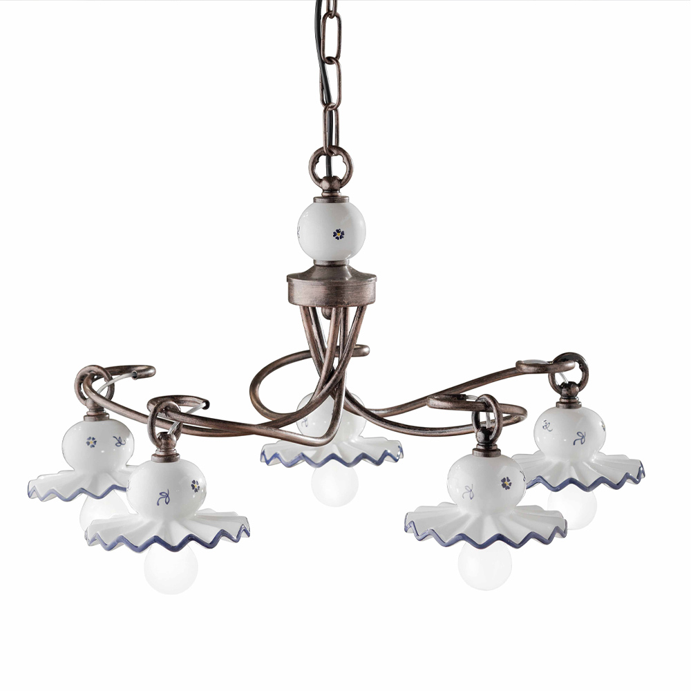 Ten 5-punktowy żyrandol jest w całości wykonany ręcznie z metalu i ceramiki z ręcznie malowaną dekoracją, podkreślić umiejętności i zdolności manualne rzemieślników.