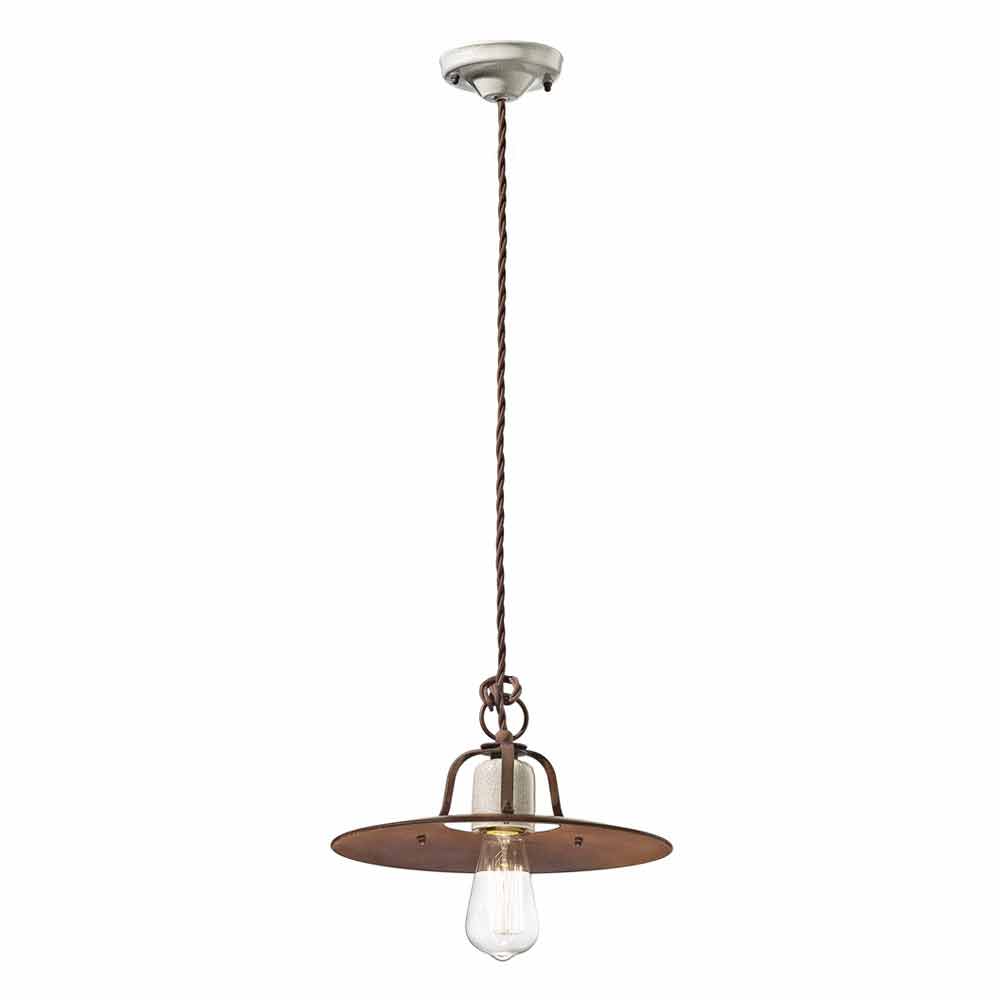 Szeroka korona i łatwo regulowana wysokość dzięki plecionemu kablowi, który dopełnia industrialny styl. Matowe rdzawe detale z metalu i ceramiki dopełniają balansu pełnych i pustych kształtów. Jest inspirowany amerykańskim stylem rustykalnym. Ta lampa o przytłumionych kolorach i żywym smaku jest prosta i ponadczasowa. Czyste światło bez ekranowania.