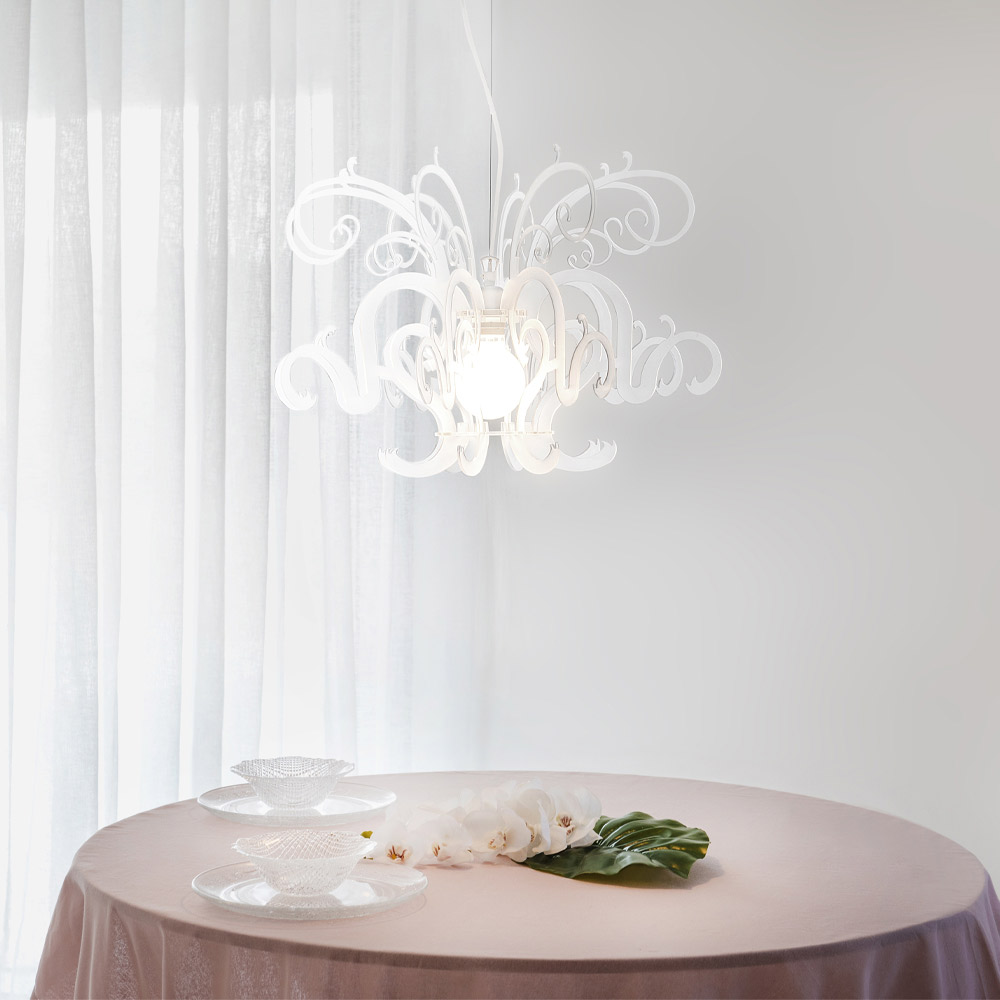 i bardzo efektowny żyrandol wiszący jest fachowo stworzony za pomocą linii i kształtów, które poprawiają niezwykłe właściwości optyczne przepuszczania światła