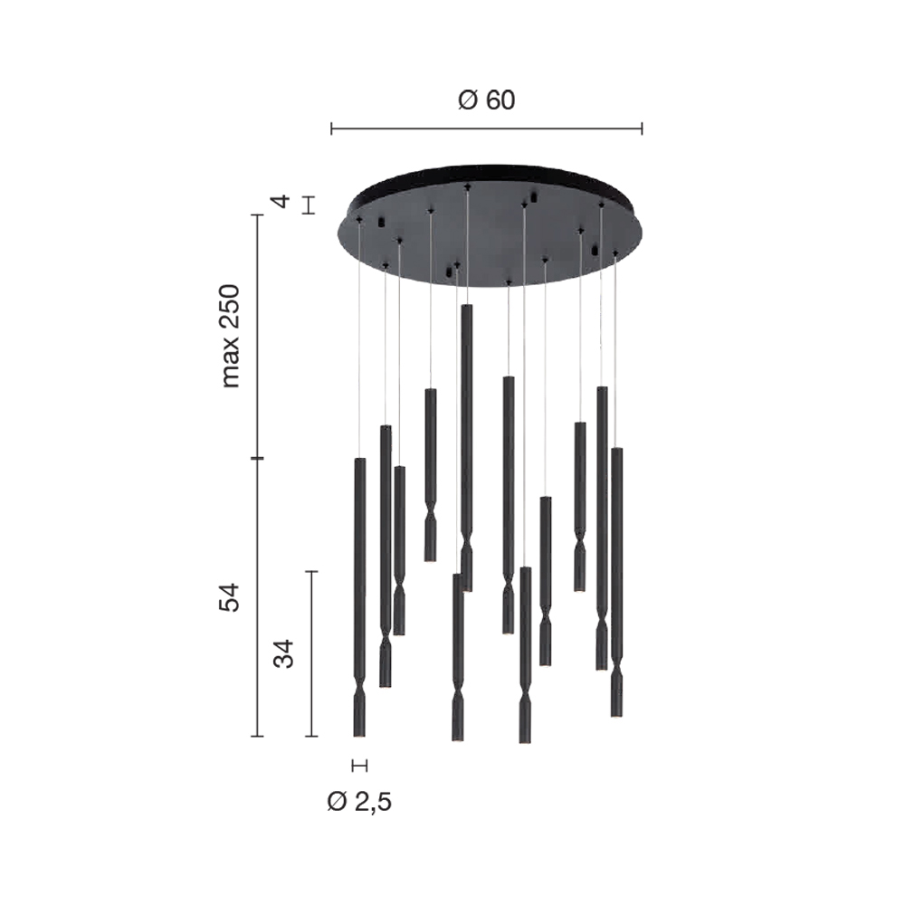 Żyrandol ze ściemnianymi diodami LED z malowanego metalu Made in Italy
