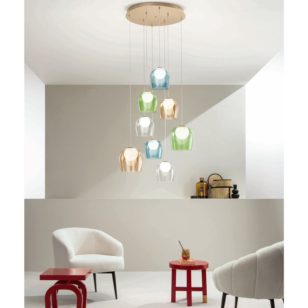 Żyrandol z oświetleniem LED z malowanego metalu z opcjonalnym szklanym kloszem Made in Italy