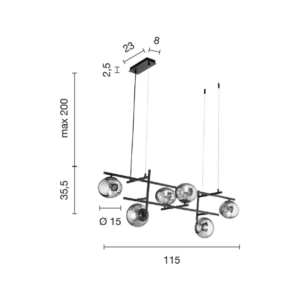 - podstawa w suficie: długość 8 cm x głębokość 23 cm x wysokość 2,5 cm