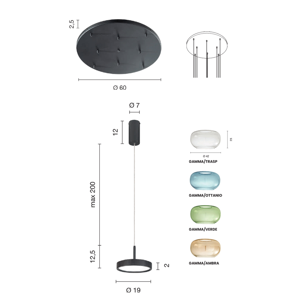 Wymiary:- podstawa w suficie: średnica 60 cm x wysokość 2,5 cm