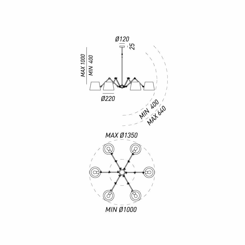Żyrandol z żelaza i mosiądzu Reporter 6 punktowy by Il Fanale
