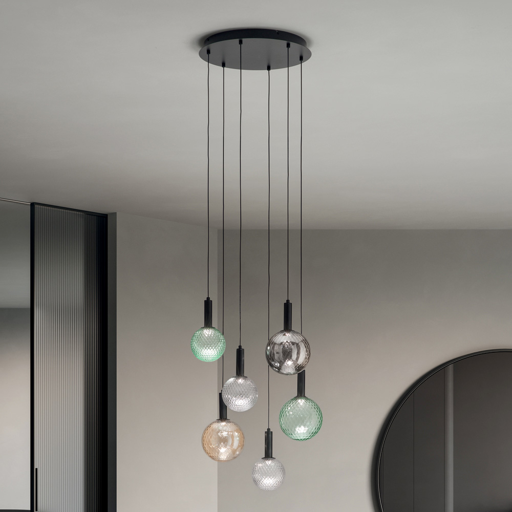 Idealna nad stołem jadalnym lub jako punkt centralny w nowoczesnym salonie , każda kula jest zawieszona z precyzją, tworząc kompozycję, która jest tak artystyczna, jak i funkcjonalna . Różne wykończenia w odcieniach szkła dodają odrobinę klasy i wyróżnienia każdej przestrzeni, odbijając światło w sposób, który przyciąga wzrok i oświetla pomieszczenie.